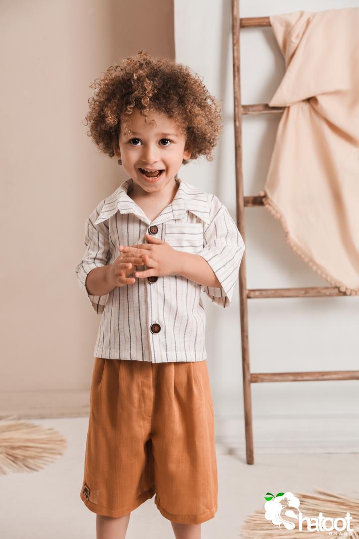 بلوز استین کوتاه جلو دکمه دار راه راه جنس لینن